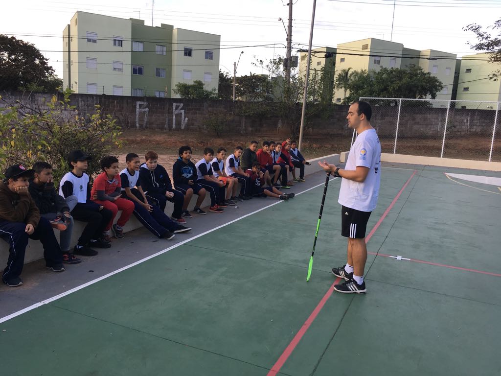 A primeira visita aconteceu na quarta-feira, 13/06, na Escola Estadual Profª. Maria Antonietta G. La Fortezza, localizada em Hortolândia. Foram atendidas 5 turmas de sétimo ano no período da manhã com a apresentação da modalidade, seguida por exercícios das ações de jogo e partidas entre os alunos. A receptividade foi muito boa e existe a intenção de realizar um festival nesta escola no segundo semestre.